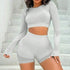 Seamless Knitted Sports Long Sleeve Shorts Yoga Clothes Suit Women