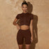 Seamless Yoga Clothes Women's Zipper Rib Sports Short Sleeve Shorts Suit