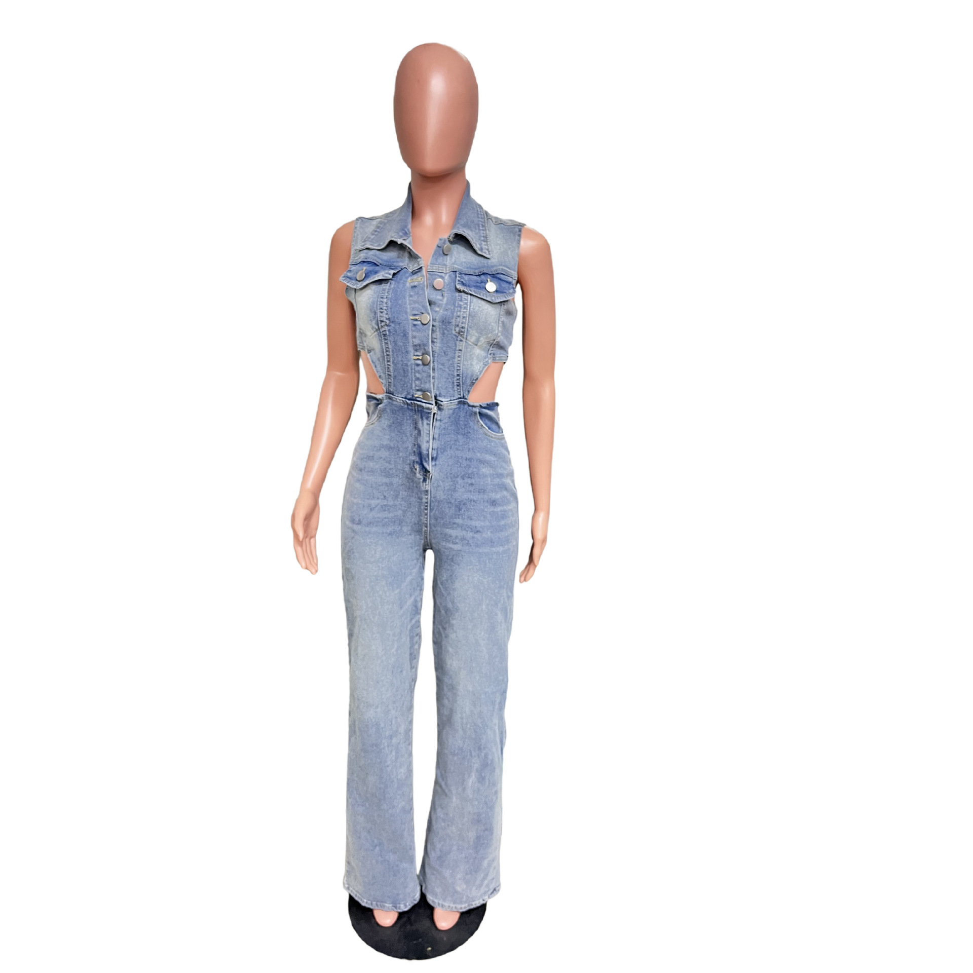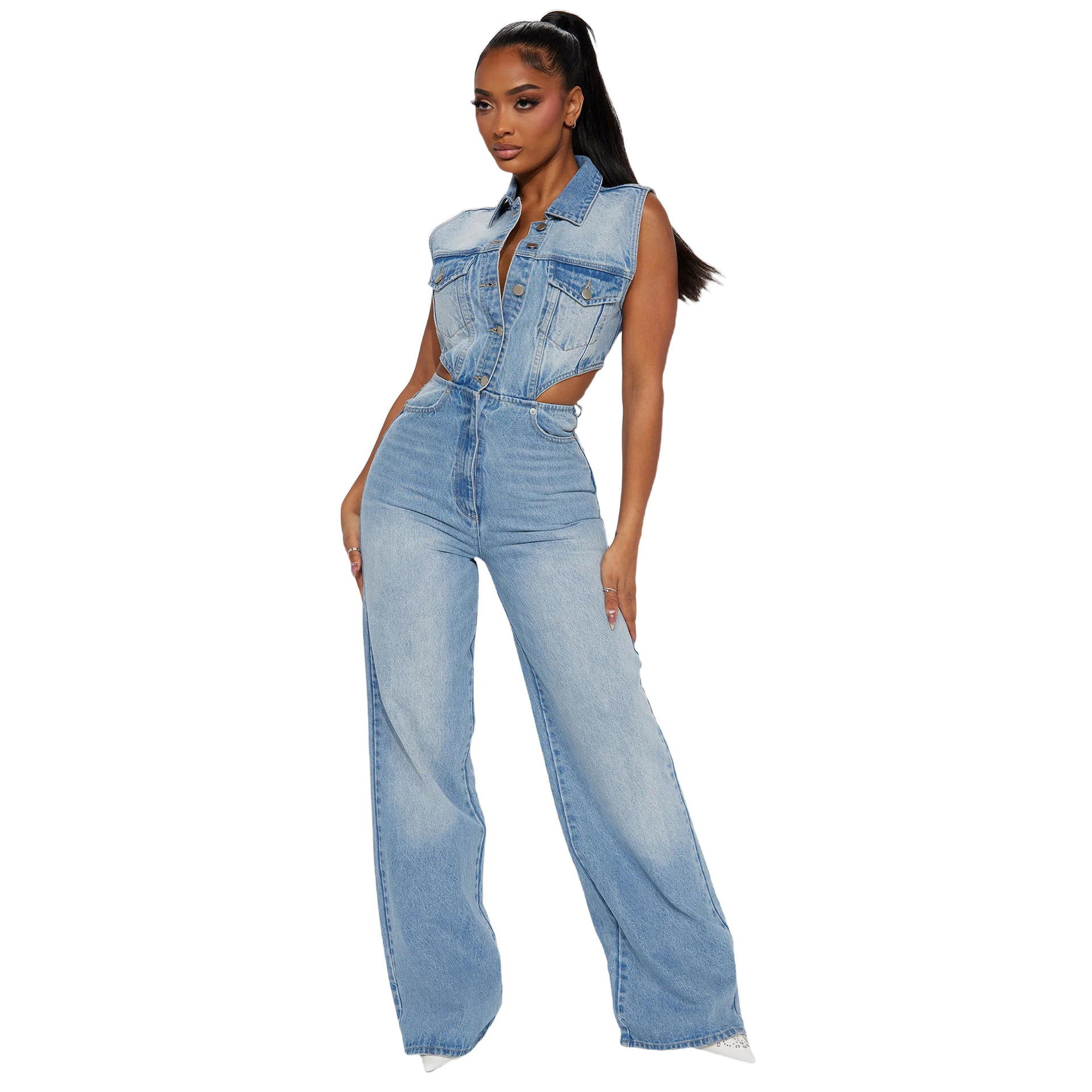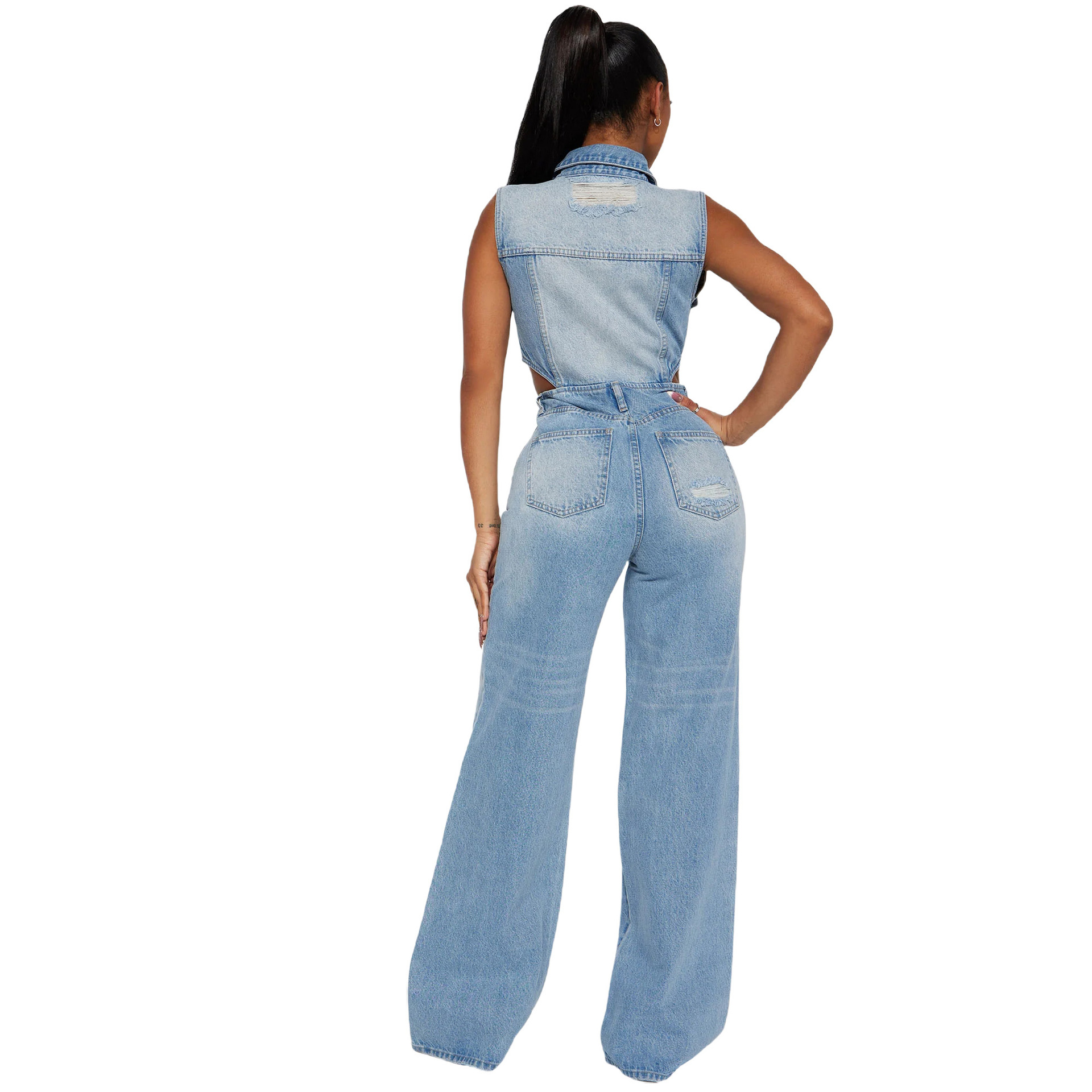 Slim Elastic Wash Denim Jumpsuit Straight Loose Jumpsuit