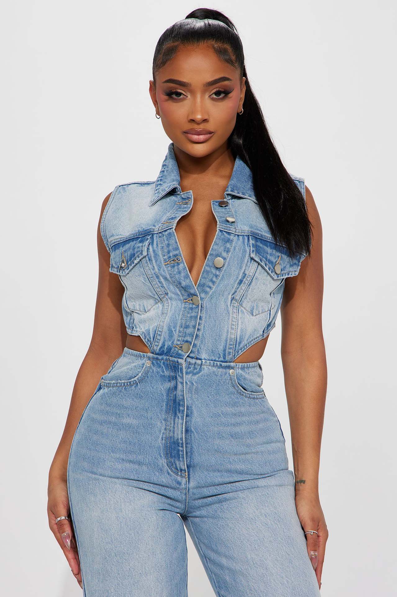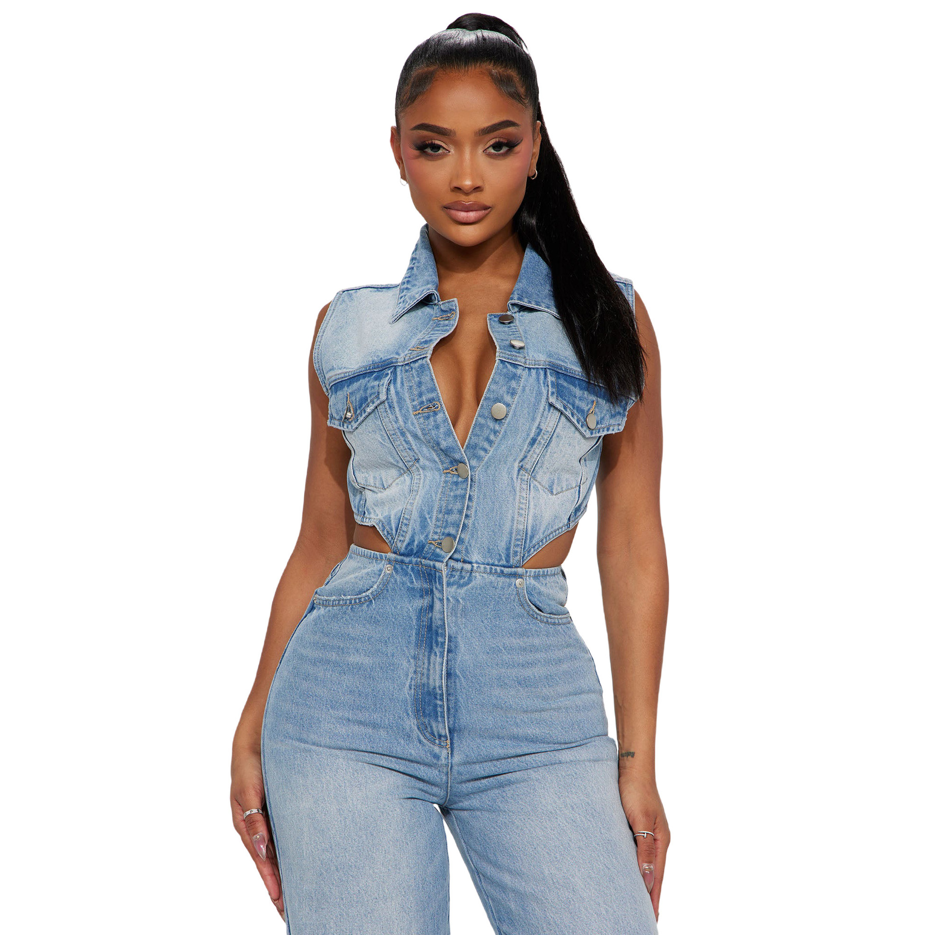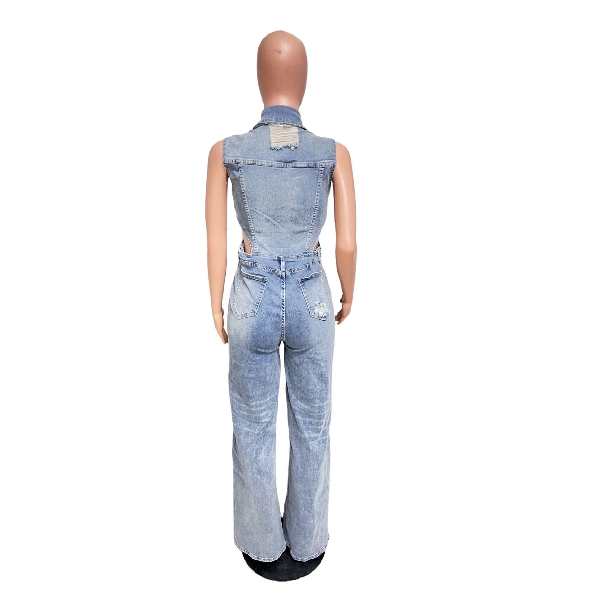 Slim Elastic Wash Denim Jumpsuit Straight Loose Jumpsuit