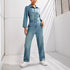 Slim-Fit Long-Sleeved Denim Jumpsuit
